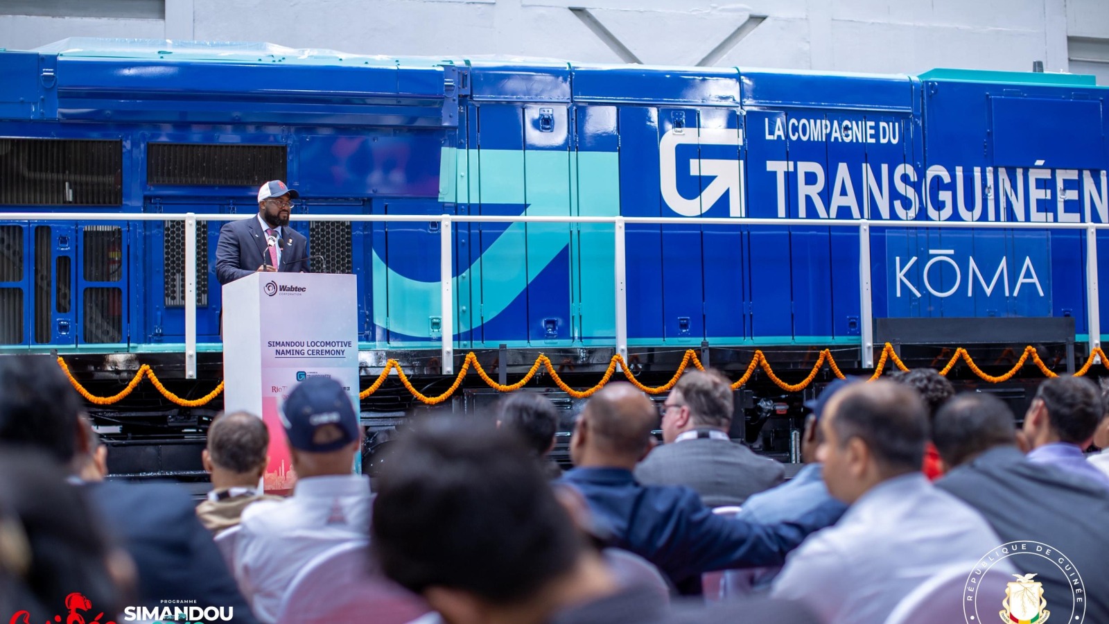 Cet événement marque une étape importante dans la réalisation du projet, avec la signature, le 30 juillet 2024, du contrat d’acquisition entre Rio Tinto/Simfer et la société américaine Wabtec – General Electric Transportation. La première locomotive de la Compagnie du Transguinéen (CTG) a été baptisée « KÔMA », en hommage au village natal du chef de l’État, le général Mamadi Doumbouya, tandis que la deuxième a été nommée « SANFINA ».