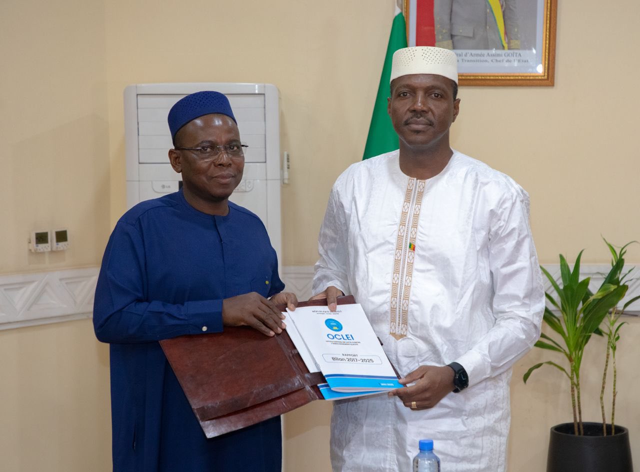 Au terme de huit années à la tête de l’Office central de lutte contre l’enrichissement illicite (OCLEI), le président sortant, Moumouni Guindo, a remis son rapport final au Premier ministre, le Général de Division Abdoulaye Maïga, le 30 mai dernier. Cette présentation solennelle marque une étape importante dans l’évolution de la gouvernance économique et de la transparence publique au Mali. Créé dans un contexte d’urgence éthique, l’OCLEI a progressivement affirmé son rôle dans la prévention, l’investigation et la coopération en matière de lutte contre l’enrichissement illicite.